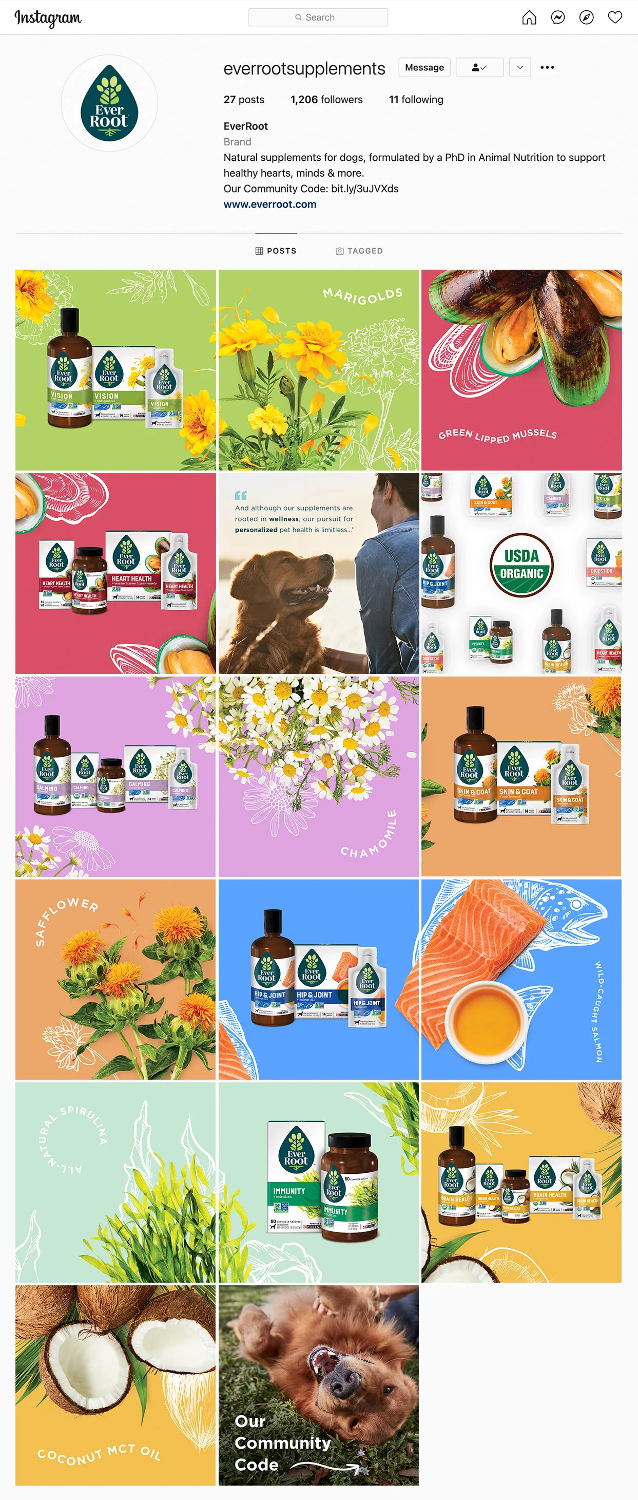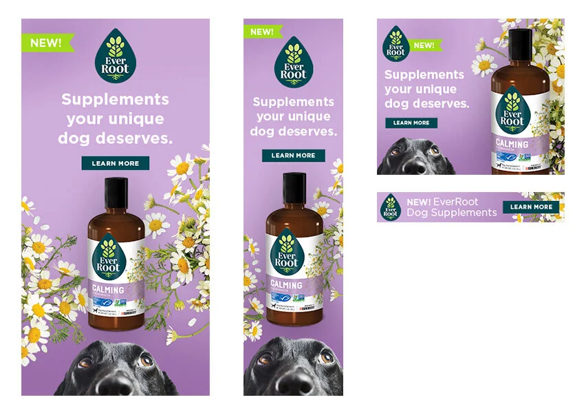 Nestlé Purina’s first dog supplements brand, EverRoot, launched in January 2021. EverRoot spotlights natural ingredients and vibrantly colored backgrounds to reflect each of the eight benefit areas these products support: Brain Health, Calming, Vision, Skin & Coat, Digestion, Heart Health, Hip & Joint, and Immunity.